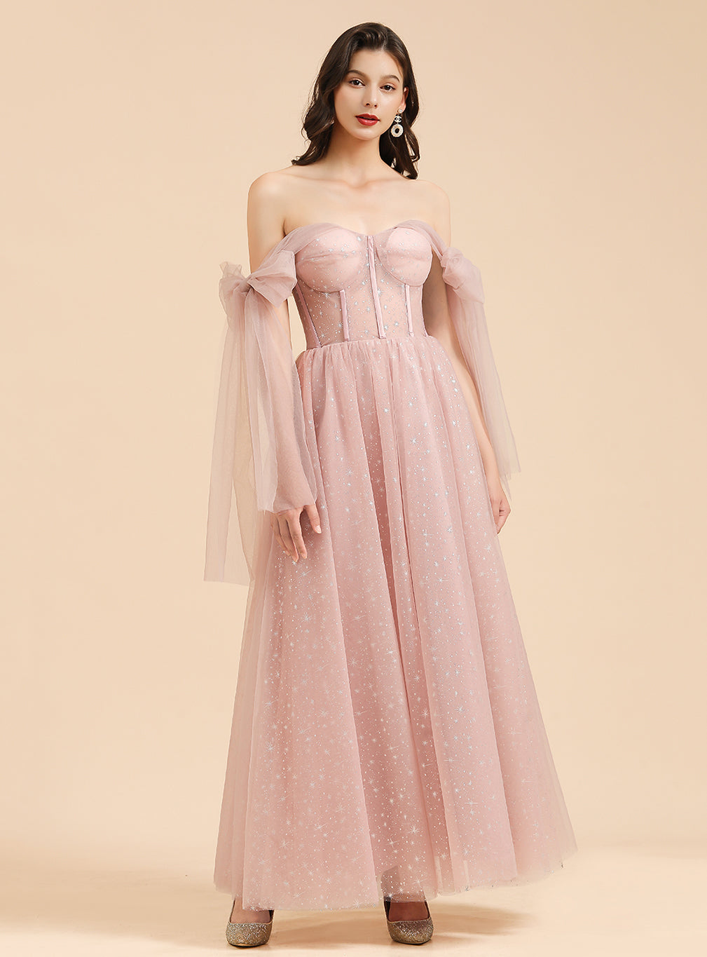 This A-line prom dress features a delicate v-neck and beautiful floral design, providing a romantic and elegant look. With attached sleeves and an ankle-length hem, it offers both comfort and sophistication. Perfect for any formal occasion, this dress is sure to make a lasting impression.