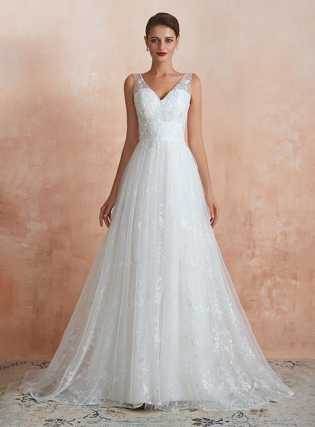 Turn heads at your big day in this stunning mermaid lace wedding dress. With a classic and timeless chapel train, you'll look stunning and feel comfortable in this sleeveless sleeveless lace dress. Make a lasting impression at your wedding!